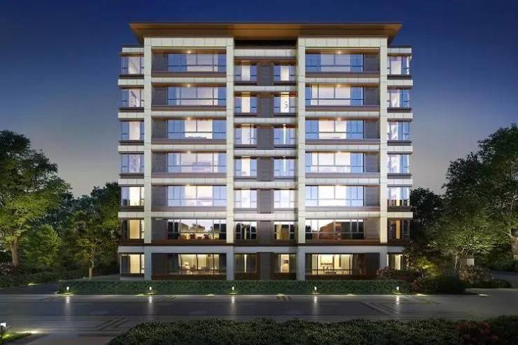 产品形态:洋房 6–8 层一梯两户;叠墅上下叠设计,独立入户 + 电梯;精装交付,配置中央空调 + 地暖;外立面新中式,大面积玻璃 + 石材线条