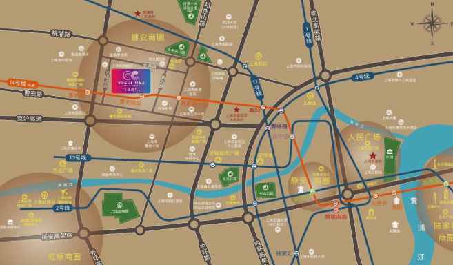 商业:位于曹安商贸区核心,正南面有 15 万方曹安国际中心 + 美陈广场,正西面有 21.7 万方悦和国际广场,正南面还有盈嘉商业广场 + 轻纺城,距离江桥万达 3.5 公里,定边路的东侧有海底捞、盒马鲜生,距离金鼎路悦乐坊 800 米。