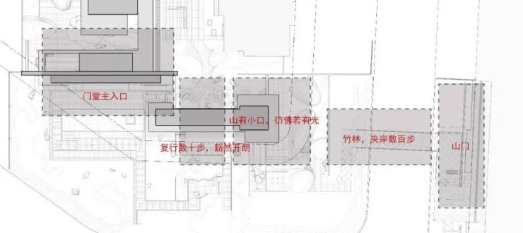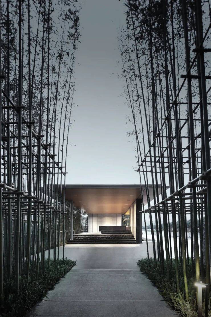 由山门隔岸步入,漫步竹林浮桥之上,打造“小桥流水人家”的空间体验。