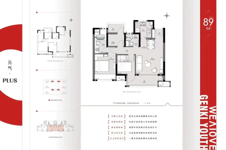 89㎡的户型有中间户和边户之分,但区别不大。