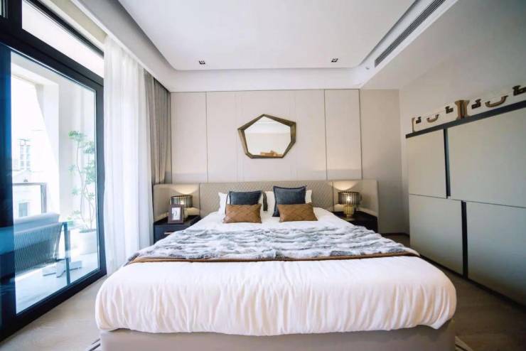 户型设计:主力户型为建面约 160-230㎡的豪华大平层,一梯一户,南北通透,层高 3.3-3.7 米,得房率约 80%。全屋精装交付,配备中央空调、地暖、新风系统等,厨房标配方太烟灶、末端净水器,卫浴采用杜拉维特智能马桶。