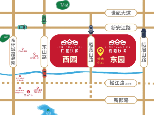 基本信息:项目分为东园和西园,北至新安江路、南至胜利河、西至东山路、东至峨眉山路。东园总占地约 5.6 万方,容积率约 2.46,由 12 栋住宅、2 栋商业组成,共 1165 户,户型面积为 95-126㎡。西园占地约 6.5 万方,容积率约 2.2,由 11 栋 18 层高层、3 栋 5 层、3 栋 8 层的洋房和 2 栋商业构成,共 1213 户,户型面积为 96-138㎡。