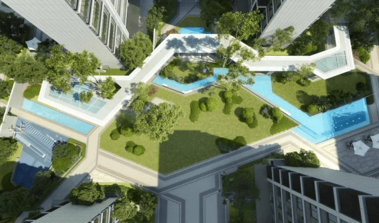 从保温一体板+铝板的外立面,到全三玻两腔双层low-e中空玻璃,再到自带架空层泛会所、景观廊架、水景等高端配置。