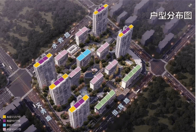 户型面积:项目有 11 种户型,面积段为 100-147㎡之间,有三房、四房户型,刚需和改善产品配比较为均衡。