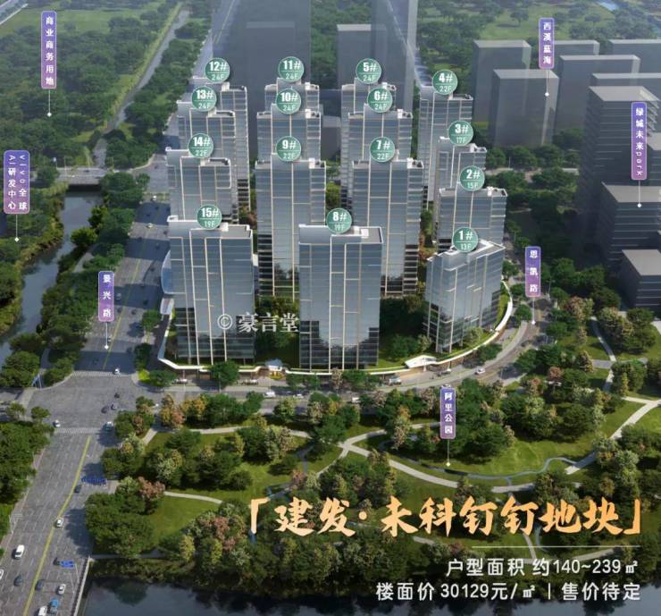 「建发未科地块」近日公示了规划方案,将打造建发在杭州首个现代风格的产品。从立面效果图也能看得出来,建发是打算冲击未科第一高层豪宅了。