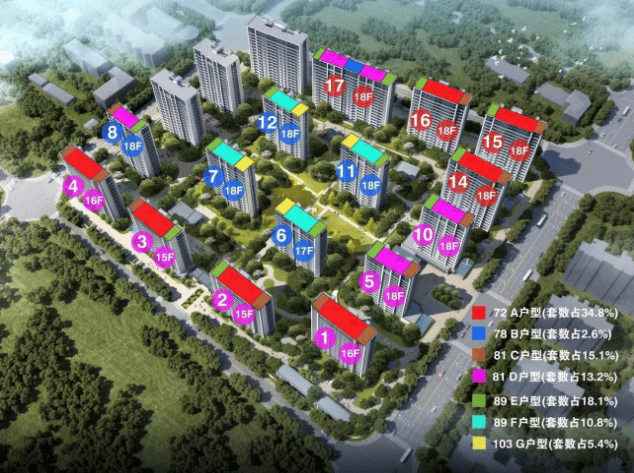 【产品户型】:72平2/2/1,78-81平3/2/1,89平3/2/2,103平4/2/2