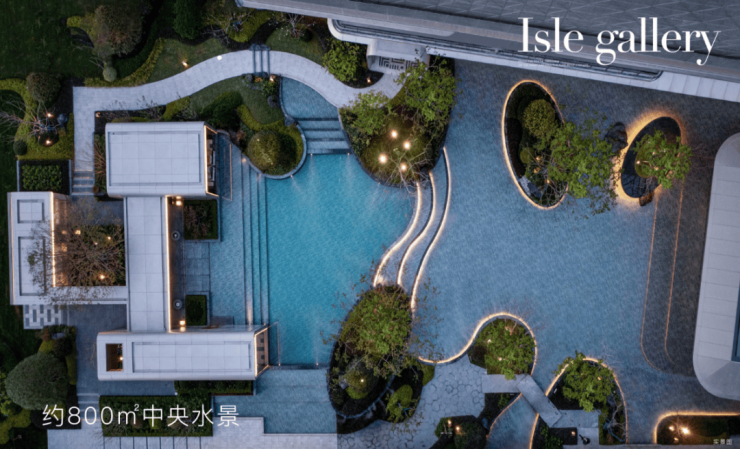 在景观设计上,晴屿望湖注重人文传承与场景创新,通过溯源湖州水漾文化,并对标Alila五星级酒店的高奢度假风,为湖州开创酒店度假式水院景观,形成由约800㎡中央水景辐射的松弛度假场域。