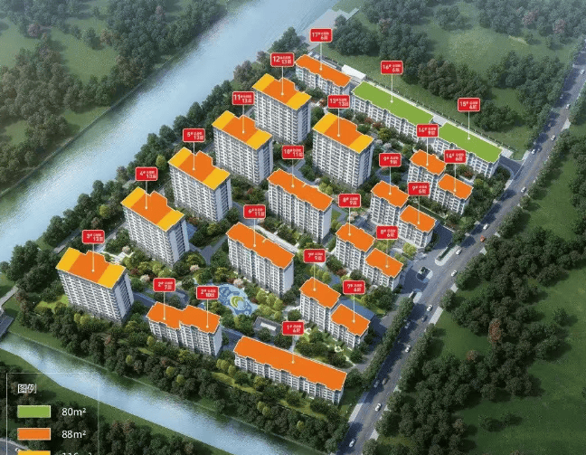 户型面积:洋房面积有 80㎡、88㎡、89㎡,小高层面积为 116㎡,此外还为一楼花园洋房配置了约 30-135㎡的花园。