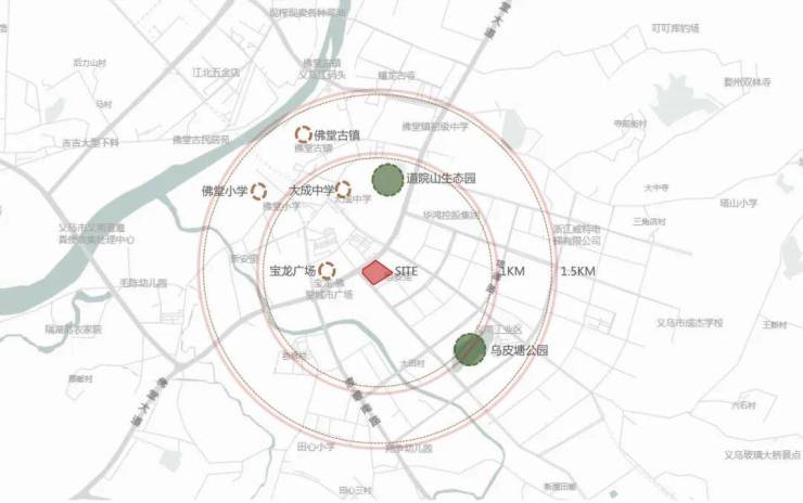 项目位于义乌市佛堂镇商务中心,地处佛堂大道与双峰路交汇处,邻近道院山生态园。区位优势明显,交通便利,城市通达性较好,生活配套齐全,区域居住属性较高。