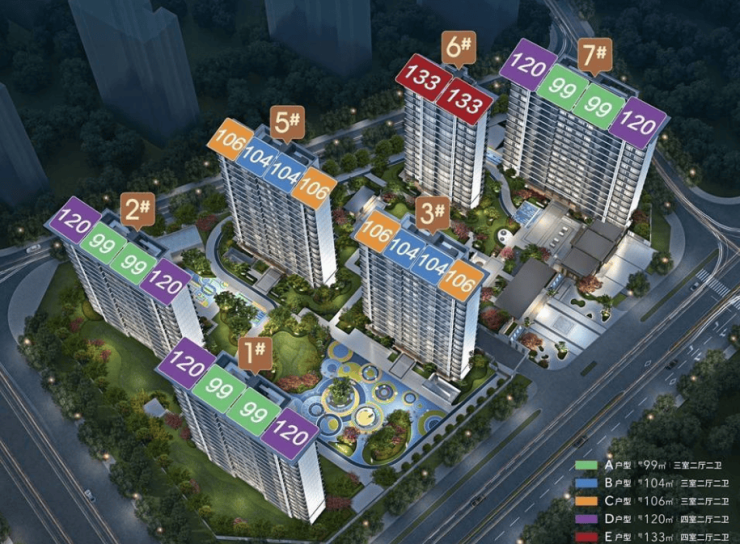 户型:有 99-133㎡的多种户型,包括 99㎡的 3 室 2 厅 2 卫、120㎡的 4 室 2 厅 2 卫、133㎡的 4 室 2 厅 2 卫等。99㎡边套三开间朝南,客厅面宽超 13 米;120㎡中间套四开间朝南,横厅设计;133㎡大四房五开间朝南,客厅面宽超 14 米。