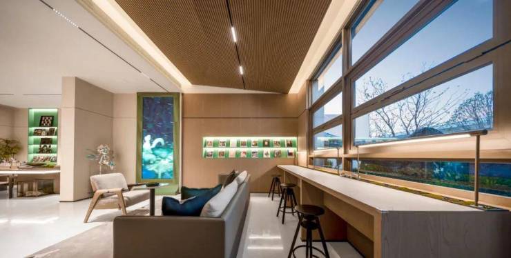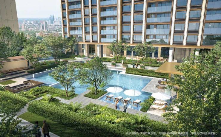 “一轴四境”的景观格局,将大堂、水院、花园、草坪等一一串联,绿洲与水系相伴,归家之路如桃源之境