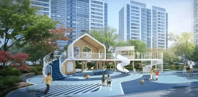 景观设计:特邀国内知名景观设计团队,匠心打造超 9000㎡中央景观公园,以可观、可游、可互动的园林盛境,打造廊架、儿童游乐、慢跑道、宅间花园等,形成全园联动。