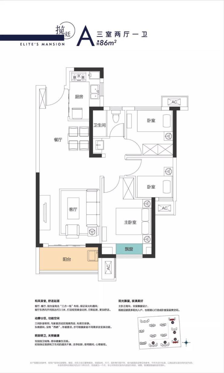 我看到了户型图之后最大的感触就是“意外”,对着户型的模型连续问了两次顾问,“这确定是三房吗?”