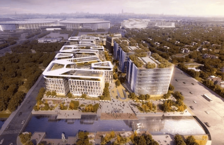 项目占地7万㎡,总建约35万㎡(地上建筑面积约17.5万㎡、地下建筑面积约17.5万㎡),国家绿色建筑标准,是区域高端办公项目。由23座独栋办公(面积总计约7万㎡)、3座甲级办公(面积总计约6万㎡)与1座商业(面积总计约4.3万㎡)、1座酒店(面积总计约2.3万㎡)组成。