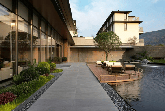 宋韵美学:建筑采用歇山顶、格栅窗等传统元素,融合现代材料,打造轻盈通透的立面;园林借50米原生高差,营造四重四季景观,步移景异。
