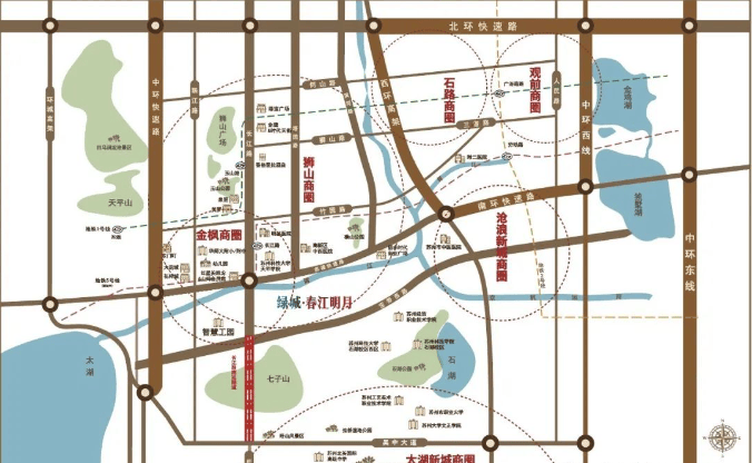 交通——长江路隧道穿越七子山及吴中大道后,通过旺山路与太湖隧道相连;项目紧邻苏福快速路与中环西线,便捷通达全城,近享地铁3号线,5号线,打造全方位多维交通体系,城心社交主场与理想生活主场自由切换。