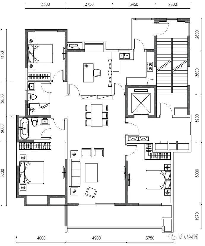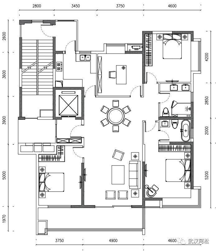 该户型位于3号楼西端头边户,南北通透设计,三开间朝南且三面采光,南向大阳台开间约8.65米,该户型大体格局与上文户型基本一致,同样也有较多的可优化空间。