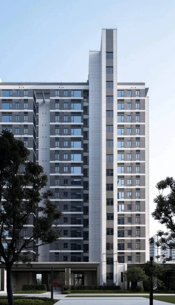 小区规划:采用现代简约风格的公建化立面,外立面以铝板结合大面高透玻璃,窗墙比约 42%。整体为大围合式布局,有约 5300 平方米中央景观组团贯穿小区轴线,打造了入口景观区、中心景观区、儿童活动区、老年活动区、宅间休闲区 5 个景观主题功能区。