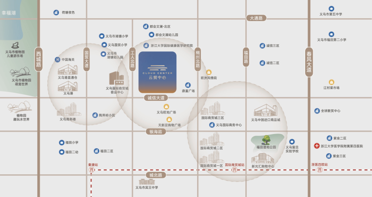 项目占据义乌福田CBD黄金地段,直面享受城市发展的红利与成熟配套,多维路网与轨道交通无缝衔接,出行无忧。项目处于工人北路与诚信大道交叉口,两条城市主干道是区域人流物流的集聚点,商业价值极高