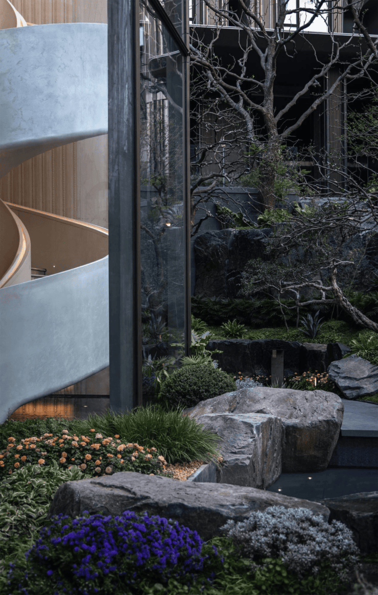 园林景观:以 “立体峡谷景观” 为核心,打造近 7 米垂直高差的 “山川溪谷庭院”,结合 5-8.3 米全架空层,形成 14 米高差的全龄剧场。社区内种植百年名木、千年璞玉、亿万年之石等珍稀材料,营造隐奢氛围。