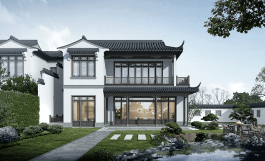 中式建筑风格:传承蓝城中式建筑基因,采用白墙黛瓦、飞檐翘角、花窗照壁等传统元素,融合江南水乡韵味,建筑外观古朴典雅,兼具现代审美。