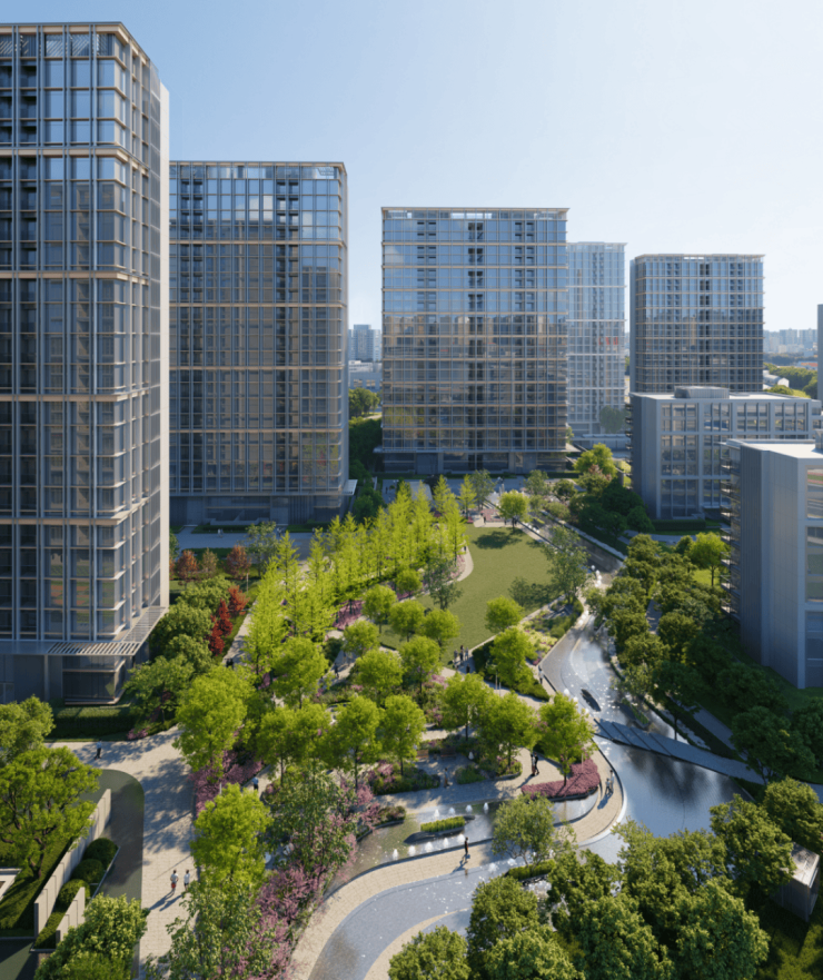 景观设计:社区内规划约 3 万 - 6 万平方米中央景观花园,由国际知名景观设计团队操刀,融合 “江、园、林” 三重元素,有滨水漫步道、四季花境、亲子乐园等功能分区。