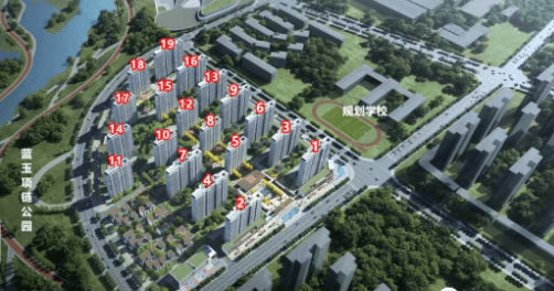 建筑布局:由 16 栋小高层、8 栋叠拼别墅、13 栋合院别墅以及一所幼儿园组成,共分为两期开发。楼体布局合理,楼间距较大,保证了充足的采光和通风。