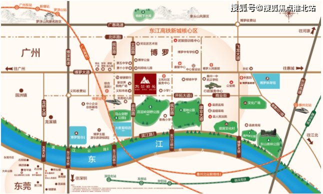 项目周边有双向6车道的博罗大道,可快速通达博罗、东莞和广汕高铁博罗站等地,6条公交车路线往返莞惠及各大市政配套站点