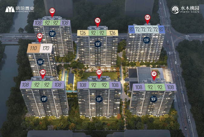 规划楼栋及户数:7 幢高层(16-18F)共 484 户;1 幢配套用房7。