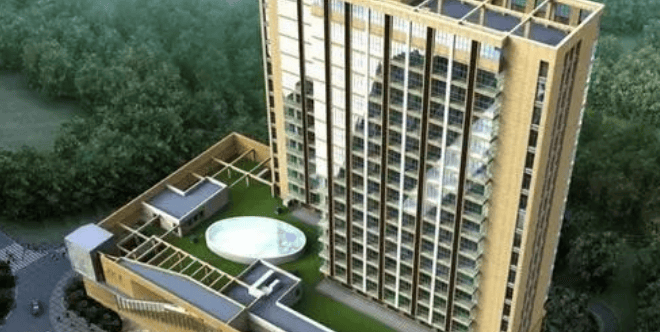 建筑规划:项目有酒店式公寓 2 幢,南幢 17 层、北幢 17 层,商铺 1 幢共 2 层,酒店式公寓为 3-17F,单层建筑层高约 4.5 米。
