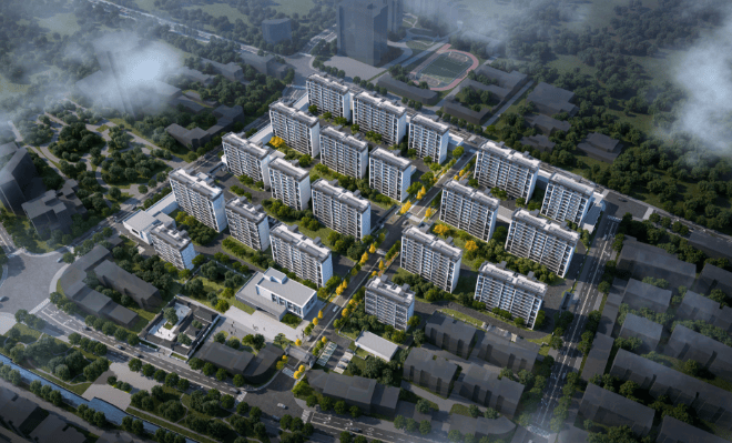 建筑风格:小区共有 20 幢 8 至 11 层洋房,建筑外墙主色调为白色,一些墙体构件和顶层外墙为深灰色,整体风格颇具水墨江南韵味。