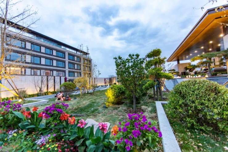 明湖雲庐在院子内部还奢侈地沿袭了中国传统山水园林精髓,精心规划了十字中轴的礼仪景观轴线,匠心营造“一道三庭六苑”的景观组团,绿化率高达40%。