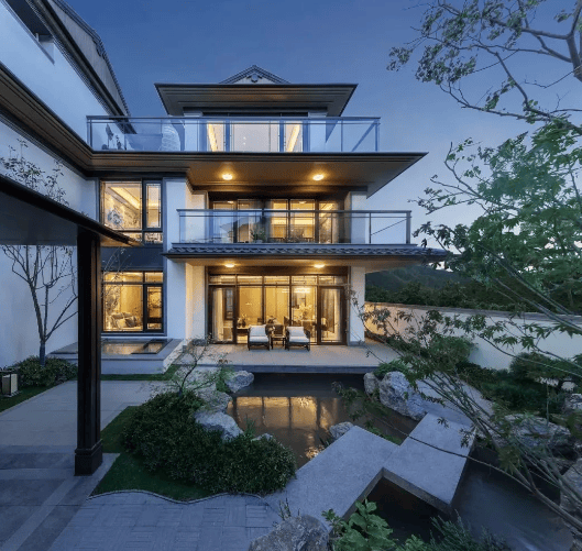 空间设计:多层挑空、全明地下空间、南北双庭院、空中露台,实现“一户多院多露台”格局。