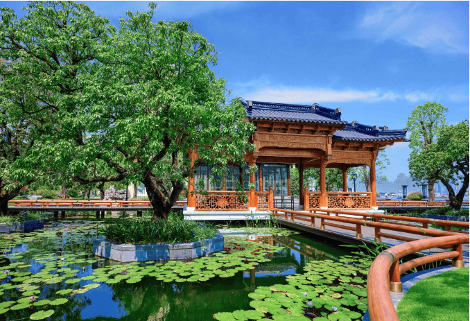 星河湾独创的“一岛一栋”,打造人工湖、宅间水系等,最大可享受270-360°水面环绕,使活水串联起生活动线和景观片段。