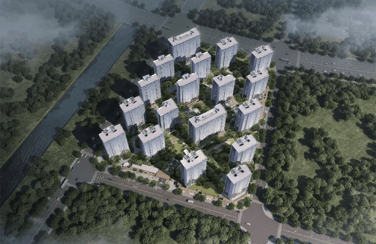 规划指标:占地约 4.6 万㎡,总建面约 14.9 万㎡,容积率 2.2,绿化率 35%;18 幢 16–17 层小高层,共 791 户,3.2 米台地式抬高设计,铝板 + 大面积玻璃外立面;