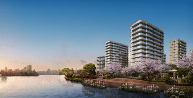 主题景观:联袂美国易顿打造 “七彩凤林” 七重景观空间,包括主入口广场 “水之舞” 景观、近 10000㎡加州阳光草坪、绍兴首个无边界镜面泳池、下沉式迷翠蝶谷、银杏长廊、童趣乐园、近 700 米滨水樱花道。