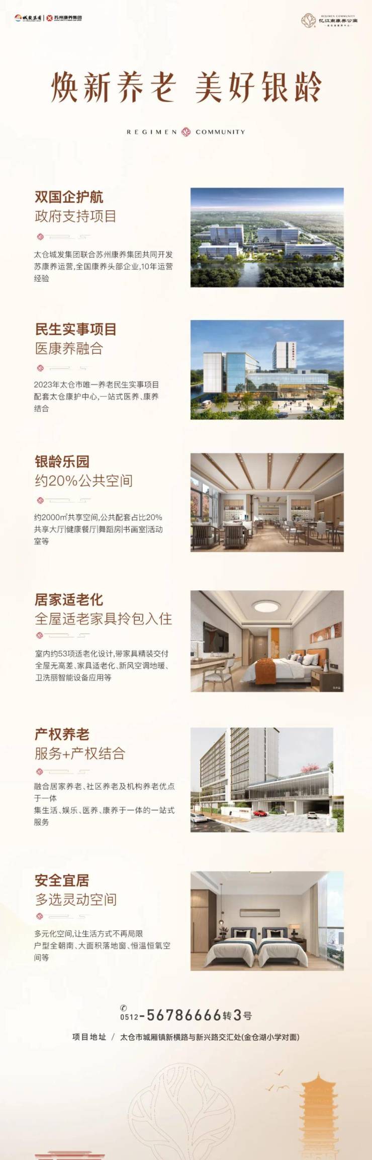 金仓湖康养中心,融合目前已有的养老模式:居家养老、机构养老、社区养老,三位于一体,在原有的养老模式基础上进行升级优化,打造了一种全新的养老模式——产权居家式养老。保证产权所属,满足居家养老的归属感, 太仓城发集团负责硬件建设和资源整合,苏州康养 集团专注运 营服务,双方优势互补。 " 双国企护航 " 的运营模式确保了项目品质。