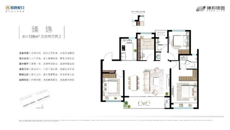 户型配置也非常纯粹,就建面约128/143㎡2个户型,全是大4房,装修交付。