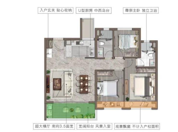 建筑面积105平是目前板块内比较少的3房2卫的房屋套型,对比同板块的小户型来看,在功能性和产品力上,要胜出许多。