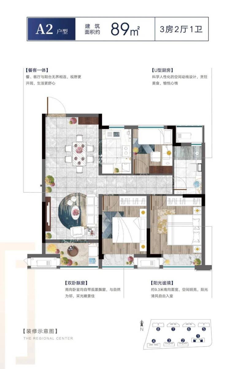 ❖双联阳台:南向主卧、次卧,皆与瞰景阳台相连,清风与阳光相伴。