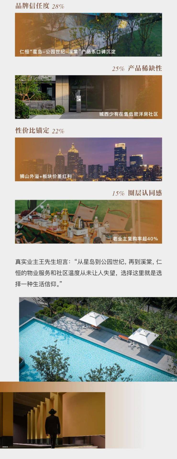 配套设施:创新性地构建了 LIFE HILLS 复合社交场域,“Y-theater 恒・心聚场” 以阶梯剧场和阳光草坪为载体,持续上演丰富多彩的文化活动,为业主提供了多元的社交空间。