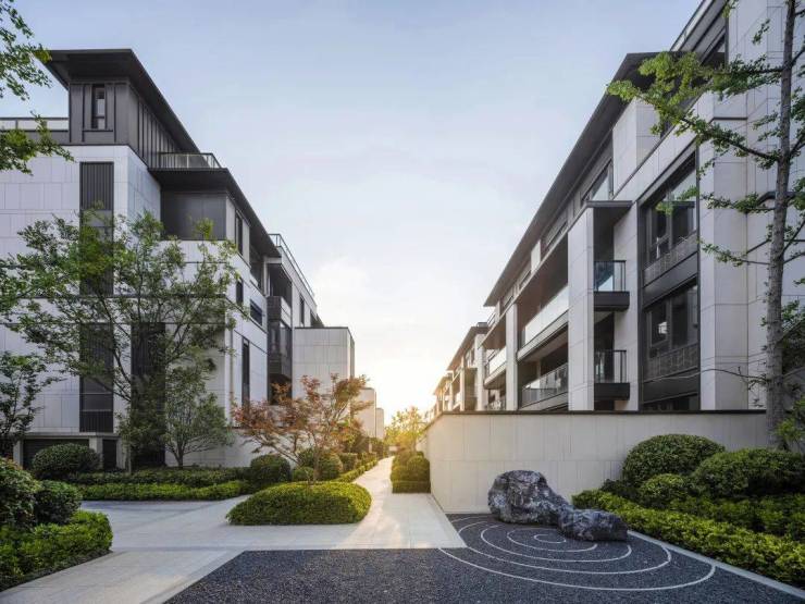 作为依山傍水的江南人居,太湖如院的规划中包括了约1.7万方的内湖,水波氤氲,湖光天境,“不出城郭而获山水之怡”,亲水栈道落于水域,游园路线仿照古景,成就将自然与生活融合的府邸。
