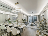 153㎡大平层:位于小区中庭黄金位置,打开电梯是独立门厅,入户有玄关,室内四开间朝南,三开间阳台长达 10.8 米,超宽 U 型厨房和餐厅相连,可打造中岛西厨,且该户型为边套,采光充足。