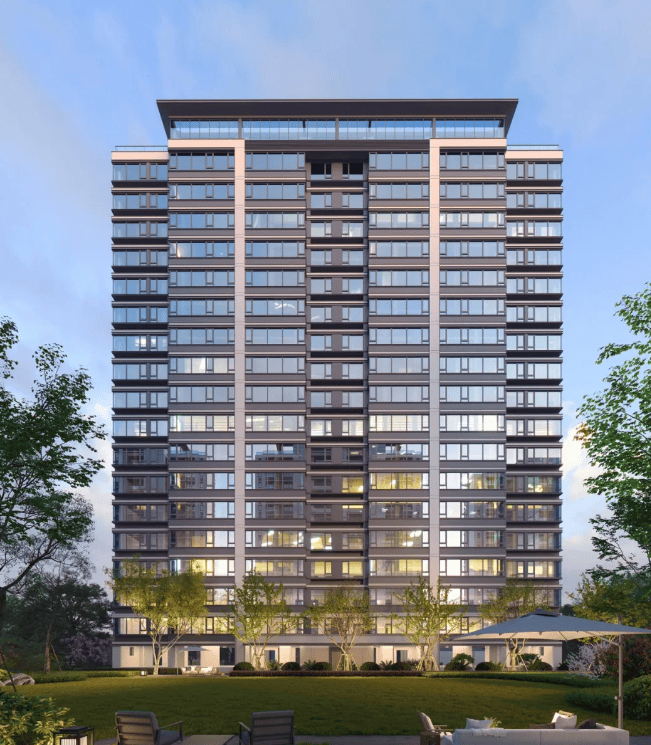 建筑设计:外立面以浅灰色金属保温一体板为主,搭配灰色铝合金线条,简约时尚;南阳台统一采用三玻两腔中空玻璃封包交付,建筑品质感十足。