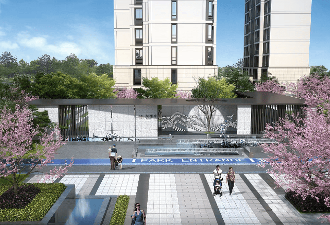 建筑风格:整体采用现代简约的建筑风格,简洁、典雅,5 幢洋房和 3 幢高层交错排布,兼具建筑品质和生活质感。