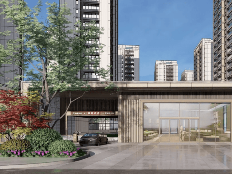 小区配套:社区内部绿化率为 30%,采用围合式布局,打造了 5000㎡主题园林,设置了儿童游乐区、老年健身区、阳光草坪等全龄化设施。入户有宽约 38 米、高约 6.9 米的奢阔门头,门前臻选丛生香樟全冠移植。