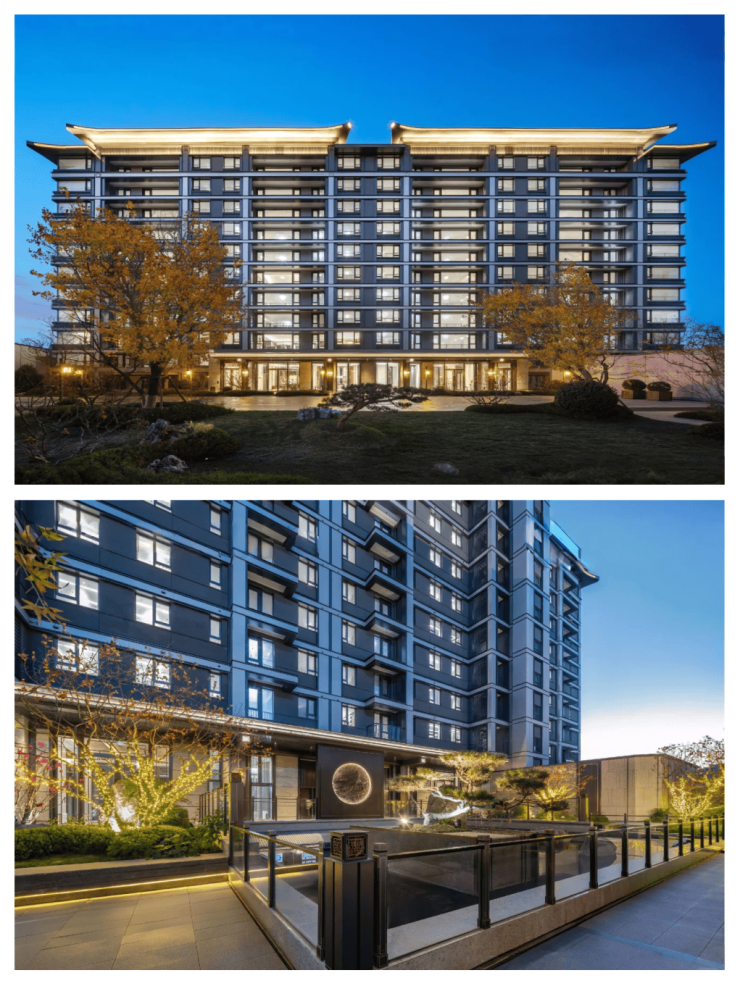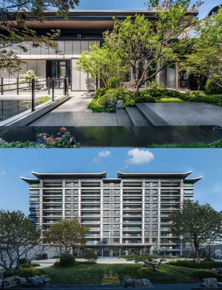 建筑设计:以宋代美学为设计灵感,外立面采用大面积玻璃与金色铝板搭配,顶部飞檐设计独具特色。小区规划 24 栋纯洋房,约 60 米最大楼间距,实现 “楼楼有景、户户观园”。