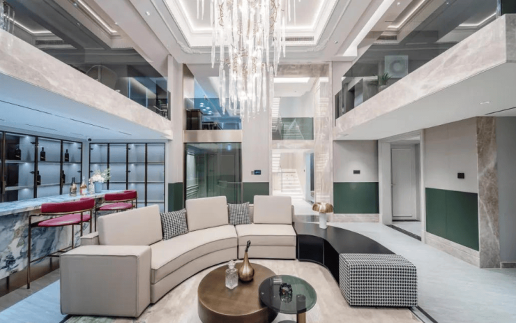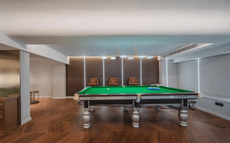其内私家车库、影视厅、酒窖、台球厅、棋牌室、雪茄区一应具有, 会谈、生活随意切换, 配备中西厨房、奢适休憩室 ,休闲志趣空间,品味城市中难得的幽静清宁。