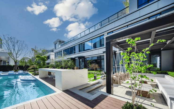 项目推出建面约300-350㎡合院,质感立面搭配大面积玻璃幕墙,花园式园区场景,可用作多种用途。