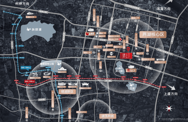 项目位于袍江两湖核心区域。交通路网纵横交错,三横三纵一地铁便捷畅通。距“镜湖、迪荡、老城区”约15分钟车程;距“上虞、柯桥”约20分钟车程